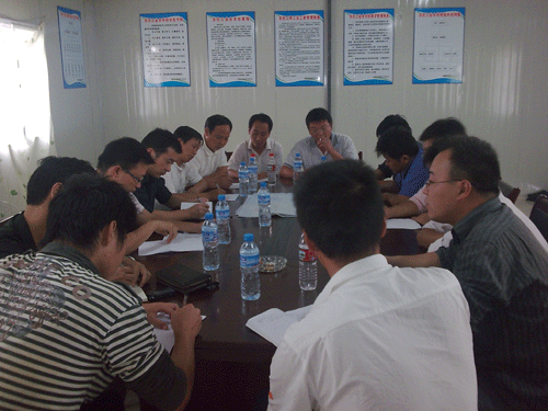 检查结束后,侯力副总经理在项目部主持召开了专项例会,具体布置、落实陶部长的要求,同时对检查中发现的问题逐一制订了整改措施和方案;会上,侯力副总经理强调:铜陵港外贸码头堆货场工程是公司成功上岸的第一个较大的陆上工程,全体项目部人员务必要从思想和行动上高度重视起来,保质保量的完成所有工程任务,他特别指出现场工程师在工程管理中的重要性,项目部要根据不同的单位工程性质定点、定人、定责;现场工程师一定要有高度的责任感,要严以律己,要不断提高业务水平,真正做到能“发现问题、解决问题、总结问题”;最后,侯力副总经理强调:现场工程师是工程质量、安全现场管理的第一责任人,现场工程师的实绩将纳入项目部的专项考核。