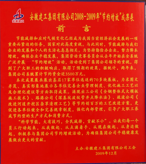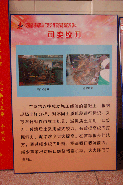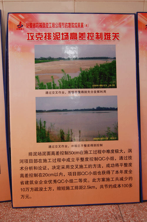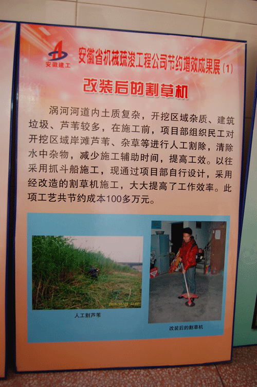 1月11日上午,集团公司“节约增效”活动成果巡回展到我公司展出,本次成果展共展出选送的70多块展板,展出作品图文并茂、真实形象地展示各单位完善企业管理制度,优化施工工艺以及合理化建议等方面取得的成果。其中我公司“改进河道开挖区杂草清理工艺”为公司节约创百万的工艺改进方案,受到了集团领导的高度赞扬。此举,不仅健全和完善了规章制度,强化内部管理,而且还引导广大职工养成节约型的生产方式和消费方式。