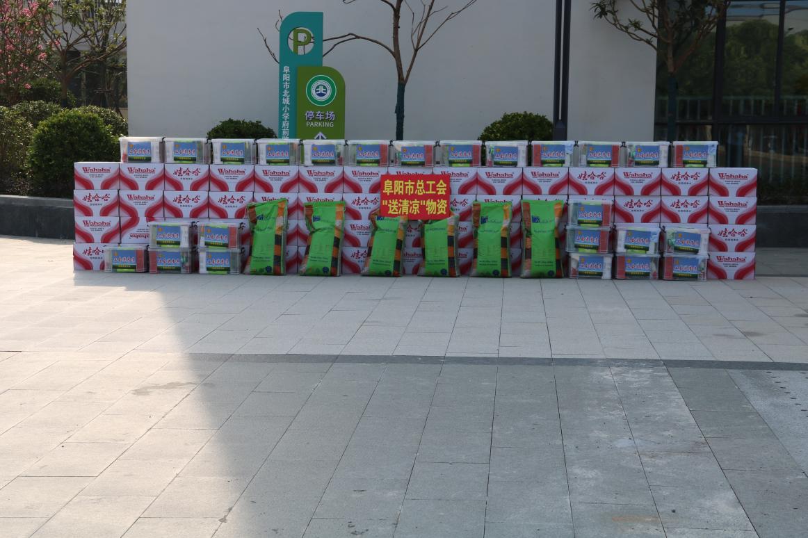 7 月 15 日上午,阜阳市委副书记、市长胡明文深入府前路小学和行知中学等项目建设现场,开展 “送清凉” 慰问活动,为炎炎烈日下辛勤劳作的一线建设者送去关怀与清凉。
