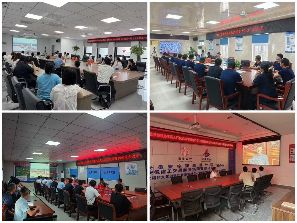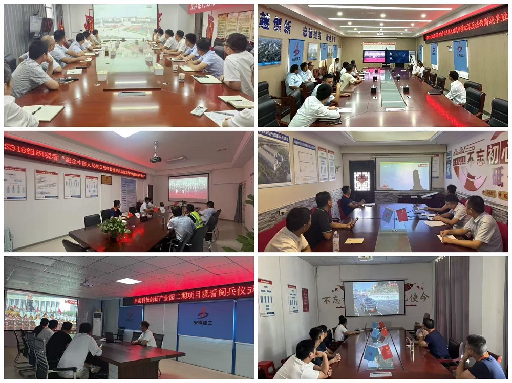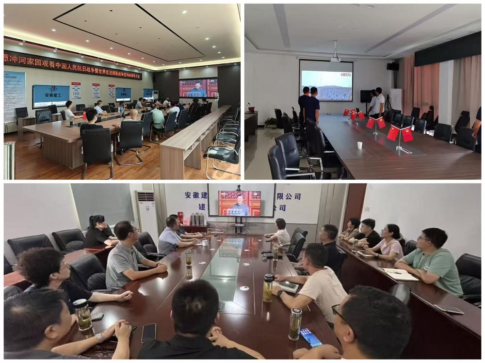 9月3日上午,纪念中国人民抗日战争暨世界反法西斯战争胜利80周年大会在北京天安门广场隆重举行。建工交航组织机关及所属各单位党员干部、职工集中观看了大会盛况直播,共同见证这一历史性时刻。