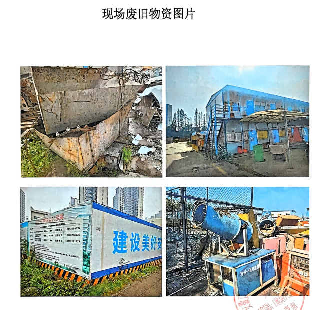 1.潭冲河项目:废旧配电箱50台、料斗7个、围挡470米、活动板房3栋(42间)、雾炮机2台;