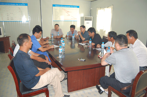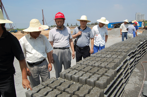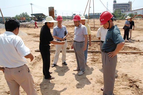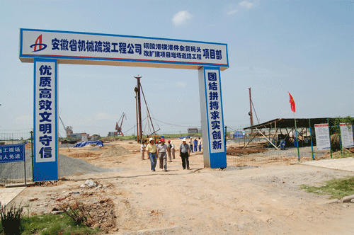 2009年9月4日,公司党委书记、总经理李世龙,副总经理侯力,总工程师盛智杰及办公室主任纪爱国一行到铜陵港横港码头项目部施工现场,对工程施工进度及现场施工质量进行认真检查。