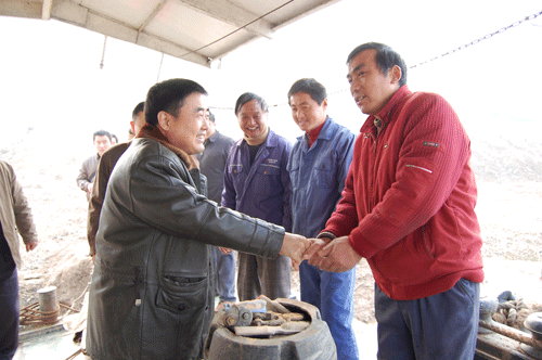董事长对一线职工的亲切关怀给寒冷的施工工地带来阵阵暖意。