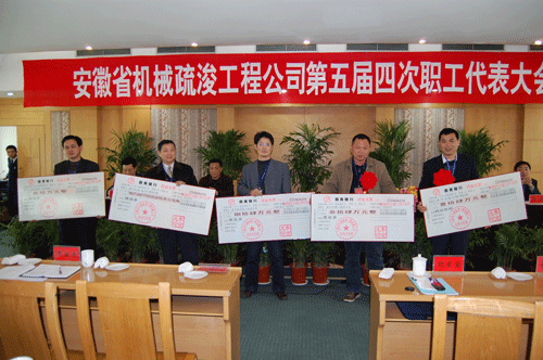 会上,公司领导还分别进行了述职,集团人力资源部和党委工作部组织大家进行了测评;签订了2010年度安全生产目标责任书和基层党支部目标管理责任书;表彰了在2009年度安全生产、劳动竞赛、文明创建中涌现出来的先进集体和先进个人,并根据公司《项目管理办法》对涡河治理12期工程项目部等九个项目部、工程处和个人进行了绩效奖励。