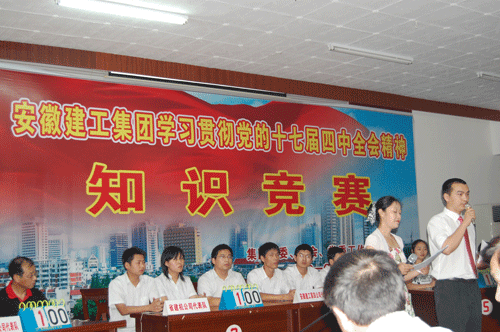6月24日,公司经过认真组织、积极备战,选派队员参加了安徽建工集团“学习贯彻党的十七届四中全会精神知识竞赛”活动。此次活动由集团纪委、工会、党委工作部、团委联合举办。