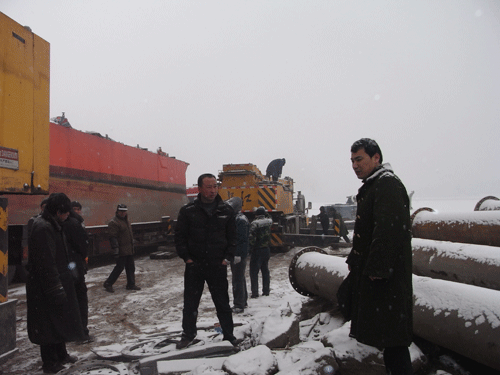 2月4日正月初二,在山西太原汾河清淤扩容固堤工程施工现场,气温零下十几度,很多员工因水土不服导致拉肚子、发高烧,仍然坚持在生产一线,顶着狂风、冒着严寒,从清晨一直忙到第二天的凌晨两点多,连续工作了二十多个小时圆满完成布排管线三千多米的施工任务。大家望着茫茫雪地里延绵数千米的管线,疲倦的脸上露出充实的笑容。为确保春节期间现场不停工,太原汾河项目部促生产抓进度,对标段内施工组织方案进行全面细化。节日期间里,广大参战员工以饱满的热情投入到施工生产中,虽然远离家乡,大家一致表示:有家人的理解和公司的关心给工作注入了不竭的动力!