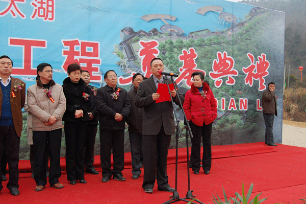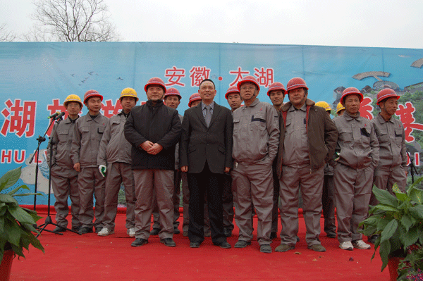 在典礼上我公司总经理、党委书记李世龙作了热情洋溢的致辞!他说,公司自工程中标以来,就着手开工前的各项准备工作。按照“优质、高效、快捷”的原则,投入大量精干力量,力争将花亭湖旅游码头建成精品工程、亮点工程。我公司坚持一贯的高标准、高要求,以一流的工程建设队伍为太湖县人民创造出一流工程、优质工程和精品工程,为提升太湖县和安庆市的旅游形象做出积极贡献。