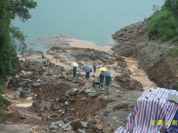 6月18日,花亭湖旅游码头工地突遭暴雨袭击,降雨量创上半年度单日雨量新高,施工进场道路存在多处坍塌,部分路段出现严重滑坡,施工区内存有大量积水,码头前沿遭雨水重创。