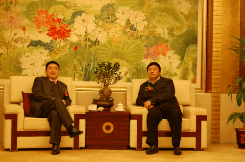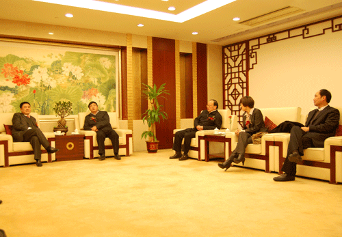 集团公司总经理、副董事长、党委副书记赵时运(左二),公司总经理、党委书记李世龙(左一)等参加会见