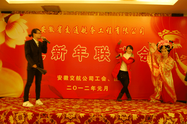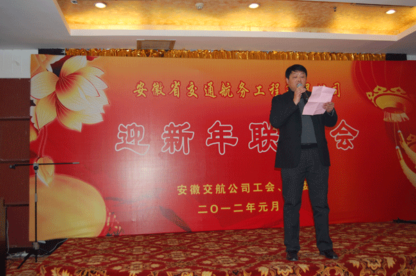 1月6日下午,康源大酒店大厅内张灯结彩,欢声笑语。由安徽交航公司工会和团委联合主办的2012年“迎新年”联欢会在这里热烈举行。交航公司领导班子成员、机关全体职工及部分在肥基层职工欢聚一堂,喜迎龙年新春。