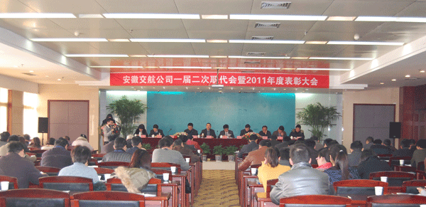2012年3月6日至7日,安徽交航公司一届二次职工代表大会暨2011年度表彰大会在安徽康源大酒店隆重召开。集团公司副总经理、党委委员霍向东,工会副主席吴晓伍、专职监事周丽出席了会议。本次会议主要任务:贯彻落实集团公司工作会议精神,总结公司2011年工作成绩和经验,谋划2012年发展大计,全面部署公司年度各项工作。公司职工代表和机关全体人员90多人参加会议。