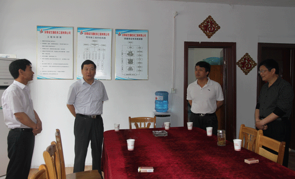 2012年5月8日,安徽省港航管理局副局长王恩国、建设处处长张俊,淮北港航局局长李卫东、副局长张新闻,宿州港航局副局长钟德平等一行在公司副总经理侯力、生产管理部主任李立柱的陪同下冒雨到浍河航道疏浚工程项目检查指导工作。