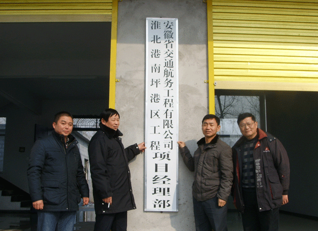 2013年1月8日,公司南坪港项目部在淮北市濉溪县揭牌成立。南坪港项目办副主任黄晓东、濉溪县海事处处长吴岩、公司副总经理侯力、生产管理部主任李立柱、南坪港项目部经理曹万飞以及项目部工作员参加了揭牌仪式。