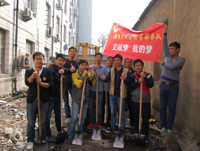 为了弘扬“奉献、友爱、互助、进步”的志愿服务精神,实践“学习雷锋,奉献他人,提升自己”的志愿服务理念,2014年10月23日上午,公司团委青年志愿者服务队——机关小分队组织了一次“学雷锋”青年志愿活动,清除办公楼南面空地上的垃圾,保障公司办公环境整洁。在活动中,参与志愿服务的青年团员积极行动,相互配合,不怕苦,不怕累,不怕脏。青年团员齐心协力,清洁环境卫生,美化工作环境,充分展现了交航青年吃苦耐劳、踏实肯干、积极奉献的优秀劳动精神和良好精神风貌。