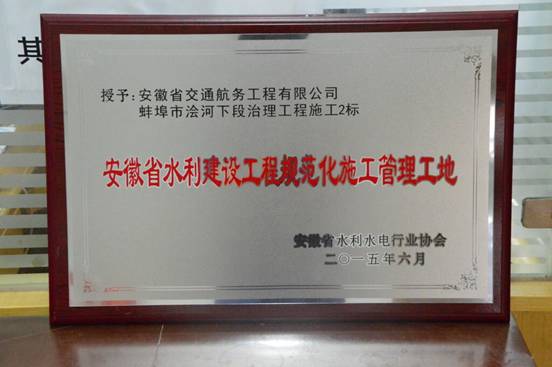 日前,我公司承建的蚌埠浍河下段治理工程获评“安徽省水利建设工程规范化施工管理工地”,这也是公司首次荣获水利系统省级工程奖项。