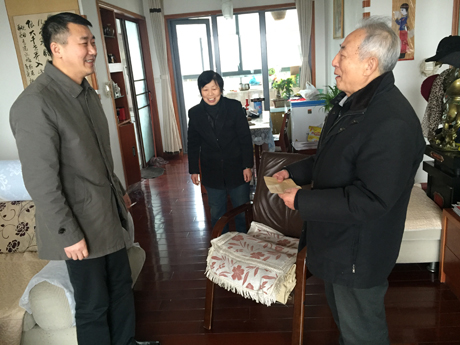 在2016年新春佳节来临之际,交航公司纪委书记、工会主席李杨和离退休办公室的工作人员来到公司两位离休干部家中慰问。
