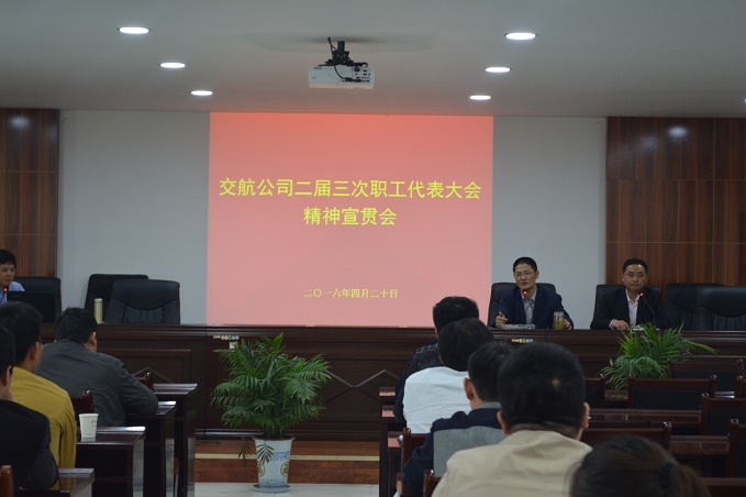 会议首先由副总经理刘军传达了交航公司董事长、总经理李世龙题为《提精气、抢市场、突主业;强人才、抓管理、补短板,奋力开创“十三五”发展新局面》的工作报告精神,随后由总经理方申柱详细解读了报告内涵。
