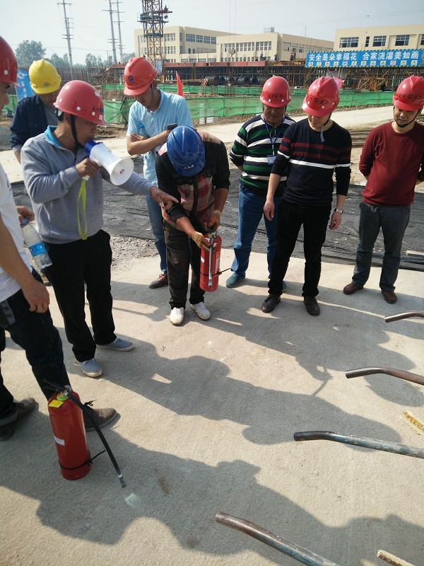 为进一步增强施工现场工人及管理人员的消防意识,提高工人对施工现场内火灾的应急扑救处置能力,亳州建工现代国际物流中心项目于2016年4月21日下午在施工现场空旷地举行了一场消防实战演练。