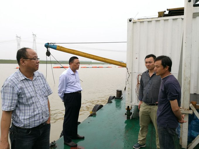 5月26日下午,公司董事长、总经理、党委书记李世龙、副总经理刘朝发、疏浚分公司经理董双武一行莅临青弋江分洪道疏浚工程项目现场视察指导工作。