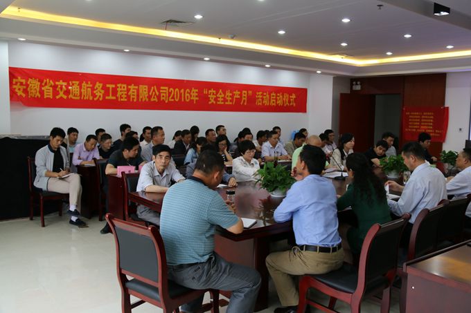 6月1日下午,安徽省交通航务工程有限公司举行2016年“安全生产月”启动仪式暨安全宣誓活动,公司领导班子成员、各项目负责人、机关全体成员参加,活动仪式由公司领导主持。
