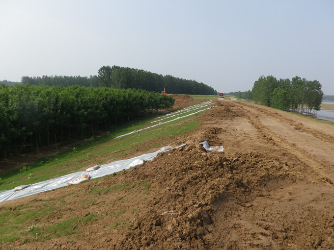李玉强一行沿着淮干项目部施工Ⅲ标段刚完工的新建堤防、老堤加固堤顶边走边看,详细听取了淮干项目副经理关于施工标段目前的防汛工作情况的汇报。李玉强表示新建成的堤防工程是蚌浮段临北处今年防汛工作的关键,对该标段堤防边坡雨淋沟防护措施表示赞赏,并要求在蚌浮段方临处各参建单位中推广。堤防工程土壤砂性大,修复工作繁重,李玉强嘱咐该标段在面临今年可能出现大洪水的情况下,思想上要保持高度重视,并在人力、物力、财力上给予充足支持,确保堤防工程的安全。