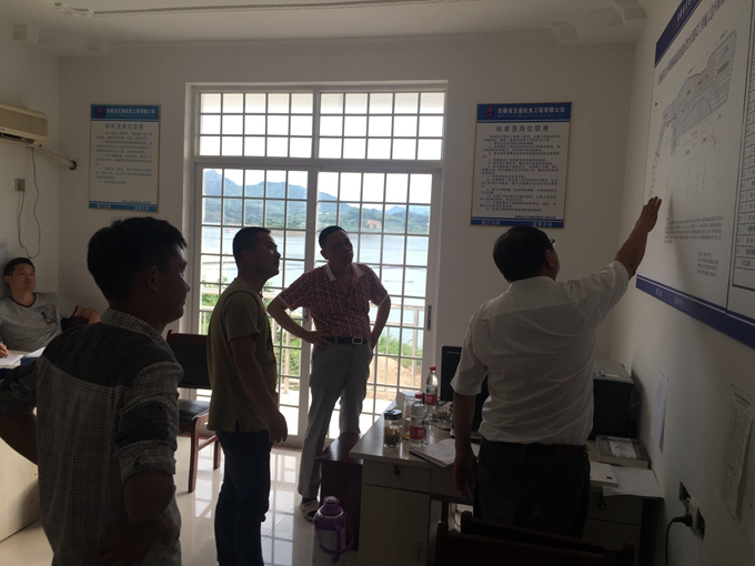 安粮黄山太平湖项目主体工程为水下桩基础工程和上部混凝土梁板结构工程,工程地处山区涉太平湖水上作业,施工受天气、地形、水位、水下施工环境等影响因素较大,施工难度较大,公司领导对该项目也格外关注与关心。一到项目部,李董事长一行便直奔工地施工现场,认真听取了项目负责人对当前施工部署、施工进度及存在的重点、难点等情况汇报,他首先肯定了项目全体人员辛苦与努力,同时提出几点希望:一是要根据现有施工方案进一步优化,合理有效的组织施工,加快施工进度;二是要规范现场施工管理,确保施工管理的各项工作开展有序,使安全、质量、成本、进度处于受控状态;三是要加强学习,利用业余时间学习专业知识、学习集团项目管理办法及相关规章制度文件,认真做好“传帮带”工作,以有经验带动无经验,年轻员工向老员工学习,边工作边学习,在实践中快速成长。随后,公司副总经理刘朝发对下一步的工作计划作了具体的明确与要求,并叮嘱项目部人员要做好夏季高温防暑降温工作,注重劳逸结合,要制定夏季高温防暑降温工作计划和应急方案,合理组织施工。