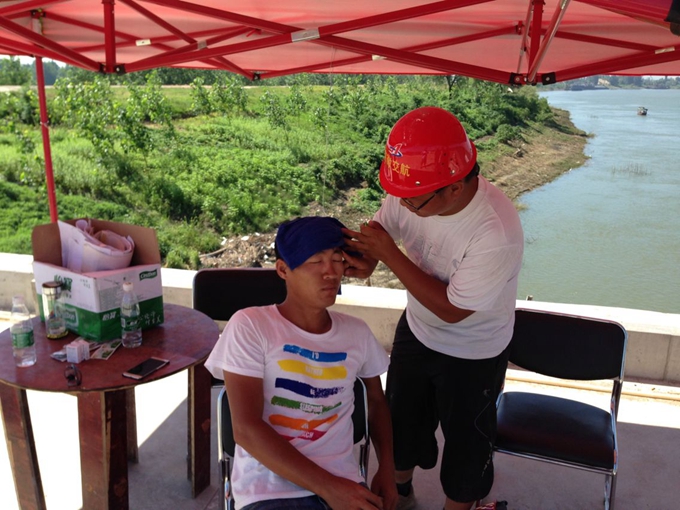 仙桃港码头作业量大,施工面广,且大部分为露天作业,作业人数多,对施工人员身心健康带来巨大挑战。为切实做好工地防暑降温工作,7月30日上午,仙桃港项目部在码头施工现场开展防暑降温应急演练。演练现场模拟作业人员发生中暑后,对中暑人员进行阴凉通风处扇风降温、掐按人中、人工呼吸等一系列抢救。通过演练使作业人员出现中暑等紧急情况时,能迅速有效的启动应急救援工作,最大限度地保障作业人员人身和作业安全。