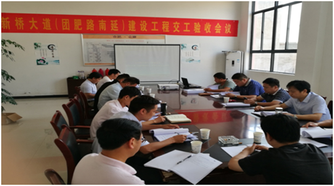 2016年9月20日,新桥大道(团肥路南延)建设工程02、03标段交工验收会议在小庙镇新桥大道项目办会议室隆重召开。与会专家听取了各参建单位的总结报告后,合肥市交通质量监督站鲍站长宣布新桥大道建设工程质量合格,同意交工。