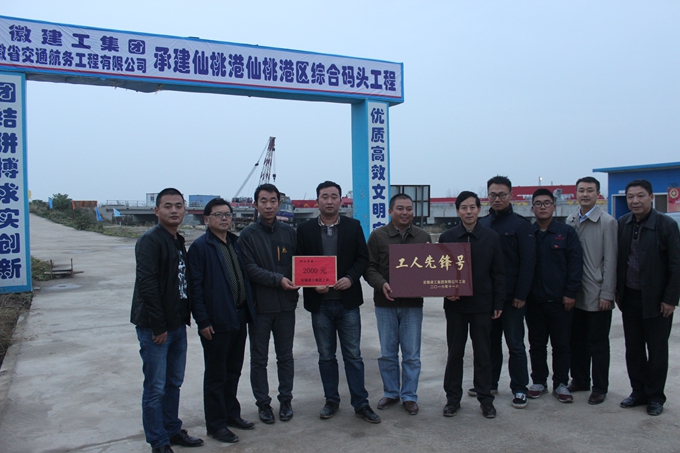 最后,考核组对仙桃港码头项目进行“工人先锋号”授牌仪式,徐主席还特地为长期奋战在偏远地区的项目职工送来了2000元“职工书屋”专项基金。