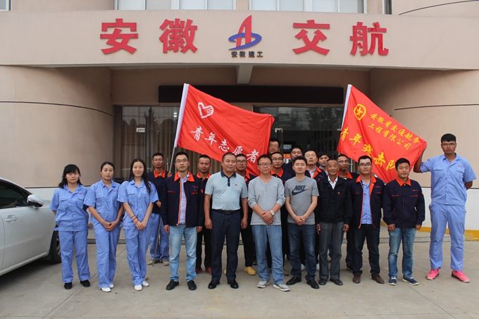5月24日,亚父路项目部举行青年突击队与青年志愿者授旗仪式,项目部邀请了巢湖市重点局市政科科长夏海涛,部长吴卫兵,监理工程师刘后平与亚父路党支部书记曹万飞一同为突击队授旗。