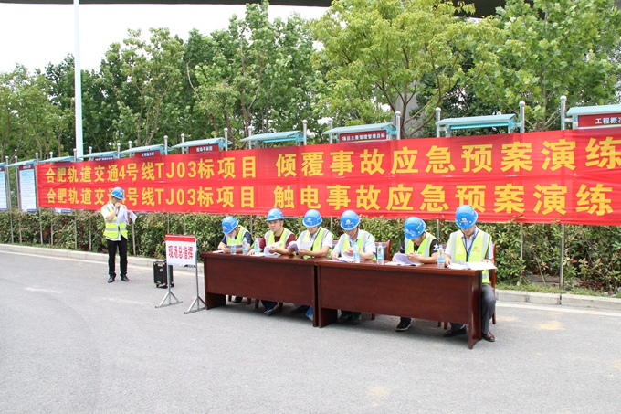 合肥市轨道交通4号线TJ03标工程项目部开展倾覆事故、触电事故应急预案演练