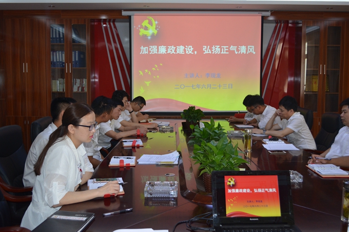 6月23日早上,亳州建工支部组织开展第二季度专题党课,本次党课以“加强廉政建设,弘扬正气清风”为主题,由支部书记李现龙主讲,全体党员参加。