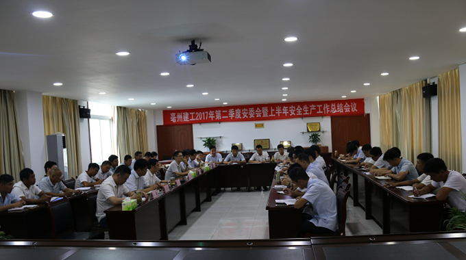 为持续平稳推进公司各项安全生产管理工作的开展,认真总结上半年安全生产管理情况,对第三季度安全生产工作进行安排部署,7月19日下午,公司在三楼大会议室召开第二季度安全生产委员会暨上半年安全生产工作总结会议。会议由副总经理刘军主持,公司董事长李涛、总经理方申柱作重要讲话,公司安委会成员、各项目负责人、技术负责人、安全员共计40余人参加了会议。