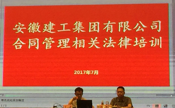 本次培训内容主要包括合同法相关知识、合同法律风险防控以及民事诉讼两大板块。在专题培训中,安徽省人民检察院王玉兰结合自身工作,作了题为《谨廉从业,远离职务犯罪》的精彩报告。安徽百商律师事务所张伟东以《民事诉讼实务》为题,对诉前程序、审判程序、执行程序、事外民事规定进行了细致分析,为企业纠纷解决方式的选择提供了很好的指引。安徽徽商律师事务所吴正林结合合同的内涵、特点、合同起草以及合同的主要风险点,深入讲解了合同主体常见问题及案例分析。安徽徽商律师事务所刘大文分析了施工合同内容条款约定存在的法律风险和防范,工期索赔期限、合同约定的权利与义务。
