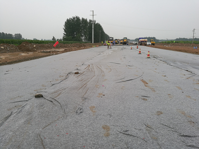 在试验段施工结束后,技术人员对试铺路段的各项指标进行了检测,均满足设计及规范要求,检测数据及成果将作为下一步大面积路面施工的指导依据。水稳试验段的顺利摊铺极大鼓舞了员工的士气,为项目下一步大规模水稳施工奠定了坚实的基础。