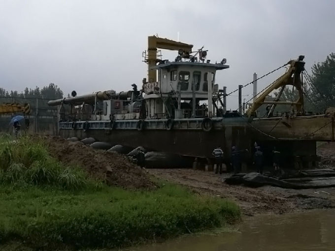 在此期间,我公司“皖吸十一号”等九艘船舶已在凤台鑫舶瀚船厂进行修理。由于该船厂没有承接大吨位挖泥船上坡的经验,在淮河水位较低的情况下他们提出的几个方案无法落实,而淮河流域附近又没有更合适的船厂可以完成上坡工作。商经理凭着数十年的工作经验,积极联系有资质、有经验的外协人员参与作业。8月12日商经理利用周末休息时间再次冒雨亲赴现场指挥,终于使“皖吸11号”顺利安全上坡并加以固定。