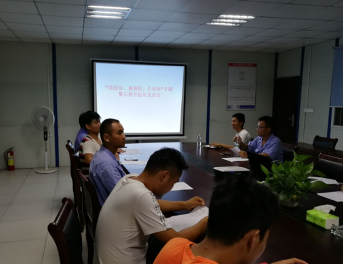 8月21日晚,沱浍河项目党支部召开了“讲政治、重规矩、作表率”警示教育专题组织生活会,项目部全体党员、入党积极分子参加会议,会议由党支部书记主持。