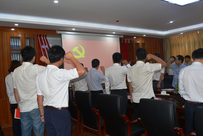 活动在全体人员奏唱国歌中开始,支部书记李现龙带领全体党员面对党旗,重温入党誓词,告诫全体党员始终牢记党员身份,争先创优,做合格党员;接着,李现龙同志宣读亳州建工党支部2017年1月至8月“每月一星”表彰名单,并对“每月一星”颁发表彰奖品,鼓励大家继续发扬党员先锋模范作用,以更加饱满的热情、昂扬的斗志、务实的作风投入到公司的各项工作中;最后,组织观看警示教育片《农发项目里的“蛀虫”》,通过学习蒙城县农业综合开发办公室原主任席汉斌、原副主任楚大保违纪案件,让大家从思想上增强防微杜渐意识,时刻筑牢廉洁自律防线,踩住工作作风实线,切实做到常思贪欲之害、常弃非分之想、常怀律己之心,切实做到守住底线,不越红线,为打造公司廉洁文化提供保障。