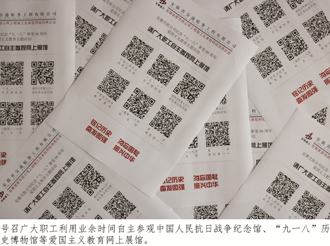 【编者按】1931年9月18日,日本帝国主义悍然发动了震惊中外的“九一八”事变。自此,中国人民开始了长达14年之久的抗日战争。为了纪念“九一八”事变86周年,教育广大职工铭记历史、勿忘国耻、奋发图强、振兴中华,安徽交航公司近日举行了纪念“九一八”事变86周年爱国主义教育系列主题活动……