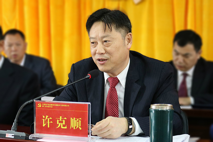 许克顺代表集团公司党委,向大会的顺利召开表示热烈祝贺,并在讲话中强调,要深入学习贯彻党的十九大精神,以十九大精神指导大会召开、部署未来工作;要统一思想,振奋精神,切实增强发展紧迫感;要落实全面从严治党要求,夯实“两个责任”,不断提高党的建设科学化水平;要严明党的纪律,严守政治规矩,确保大会圆满成功。