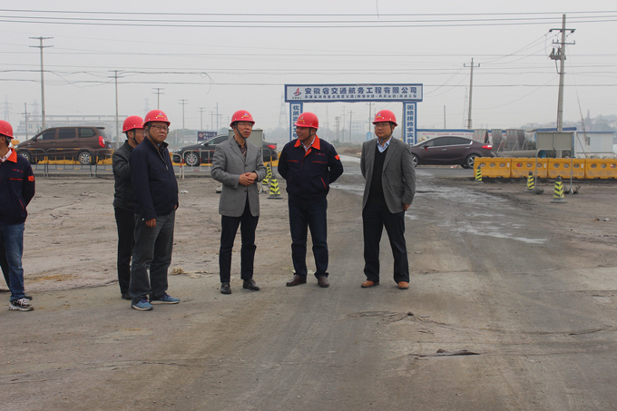 2017年11月14日上午,集团公司党委委员、副总经理王厚良在集团总经理助理、工管部主任童宗胜,总工办副主任崔林钊,安徽交航副总经理刘朝发等相关人员陪同下莅临安徽交航巢湖亚父路项目调研指导工作。