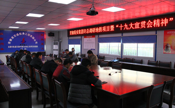 2017年12月24日下午,合肥市轨道交通4号线03标潜口路站项目部召开贯彻落实集团公司许总调研地铁项目暨“十九大精神”宣贯会,公司副总经理侯力,纪委书记、工会主席李杨,总工办负责人卫邦齐及项目部各部门负责人参加,会议由侯总主持。