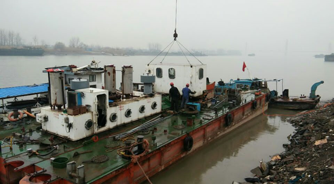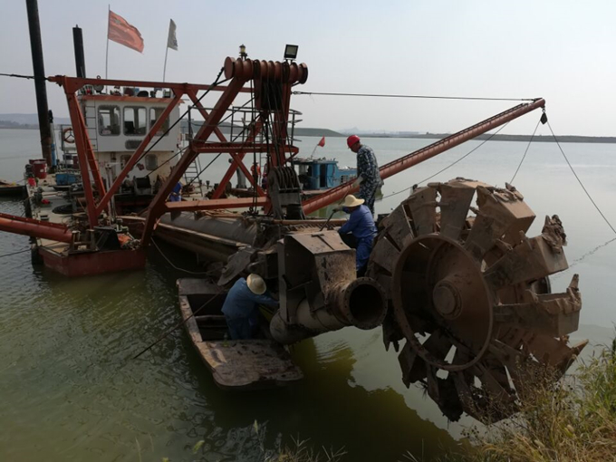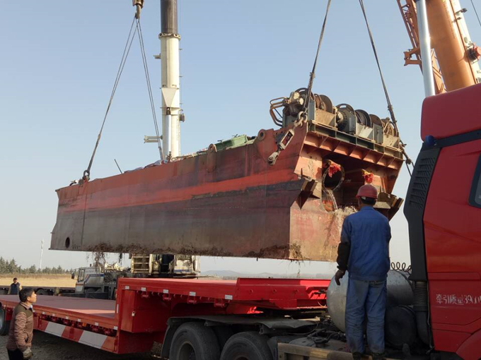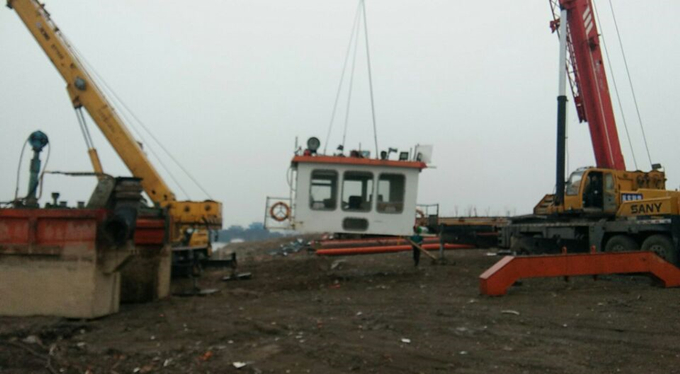 面对皖吸十二号挖泥船这样几百吨重的庞然大物,还有抛锚艇等辅助设备均需短时间从陆上运输到三百多公里以外的新工地等新问题,疏浚分公司人员开动脑筋、创新思维,积极探索新方法、新思路。疏浚分公司与专业团队达成战略合作框架协议,大胆利用新技术、新设备,以全面提高安全系数,合理高效地利用时间、空间。疏浚分公司将挖泥船及辅助船舶科学地进行水上解体,化整为零后装车运输,到达工地后在进行水下组装,在此过程中还进行了适当的维修保养。自本月23日到27日共历时五天时间,皖吸十二号船队顺利抵达当涂天宇船厂并完好无损地保持了原有的各项性能。