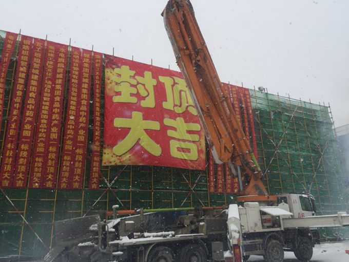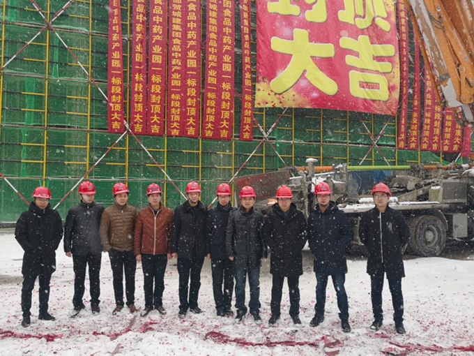 雪花纷飞、礼花齐放、鞭炮齐鸣,1月25日上午10时08分,由亳州建工承建的城建集团食品中药产业园项目一标段封顶仪式隆重举行,公司副总经理刘军、胡志友及项目各参建方共同见证封顶时刻。