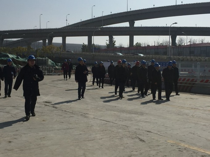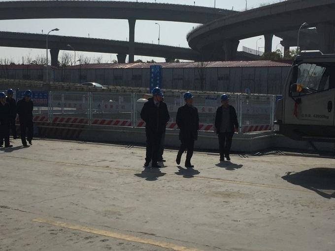 赵总一行深入施工现场,同现场技术人员及一线工人一一握手,感谢他们的辛勤付出。他查看了项目现场施工作业情况,对机械设备、防护设施、临时用电设备进行了详细的检查,并仔细询问项目复工情况、工程进度、工期安排及基坑施工过程中的重点和难点。