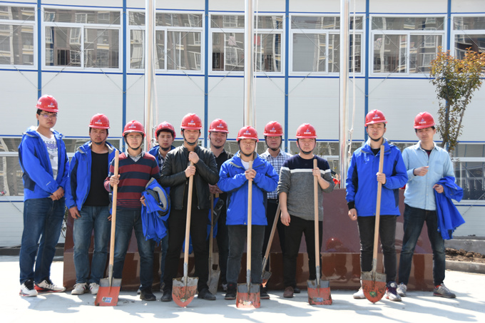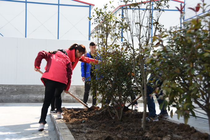 植树现场,大家拿起铁锹,互相配合,有的挥锹铲土、有的扶树填土、有的培土浇水,忙得不亦乐乎。经过2个多小时的劳动,22棵苗木得以安家在项目部的花坛中,为大家的工作环境添上了一片新绿。