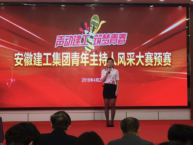 集团公司团委书记王诗旵首先代表集团领导预祝本次比赛圆满举行,随后主持人李锐对本次主持人大赛的规则、程序以及各单位参赛选手进行了简短介绍。比赛开始后,选手们进行了精彩的表演,出色的表现不时赢得台下观众的阵阵掌声。比赛结束后,合肥广播电视台主持人金山代表评委进行了发言。他指出,通过举行本次青年主持人风采大赛,展现出了安徽建工人年轻的风采。对于参赛选手的表现,金山老师表示整体水平非常高,参赛选手的水准出乎他的意料,这也反映出安徽建工集团对于青年员工综合素质培养的重视。对我公司参赛选手的表现,金山老师给予了表扬。