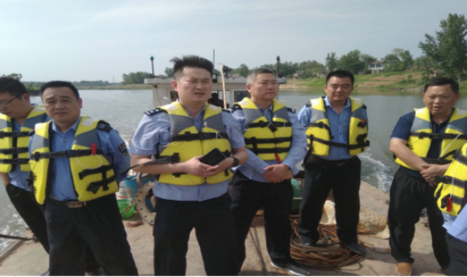 会后,在项目经理的带领下,水务局执法队深入现场,考察现场施工安全情况与航道内清淤的成果。朱队长充分肯定了项目部做出的业绩。在现场考察期间,一艘无人的非法采沙船当即被执法队扣下,调离河道。这样强而有力的举措是项目施工质量的有力保证,更是人民生命财产安全的有力保证。