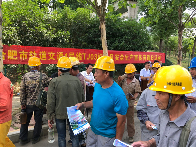 6月16日,合轨4号线TJ03标项目部组织开展2018年“6.16”安全咨询日活动。