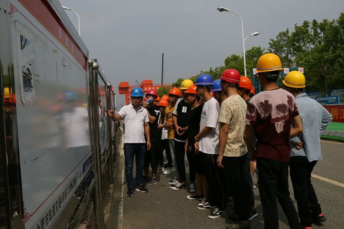 6月21日上午,合轨4号线TJ03标项目部施工现场迎来了一批年轻的客人,他们来自安徽水利水电职业技术学院。项目部副经理金振兴、工程部部长张功印对各位同学进行了热情迎接,并代表项目部领导班子对同学们的到来表示热烈欢迎。